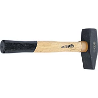 spijkers, pluggen, etc. in te slaan, voor universele werkzaamheden.Gesmede uitvoering.Coating van de kop met gestructureerde thermische lakverf.Met gelakte, hardhouten steel.Slagrandzones inductief gehard.Baan blank geschuurd.Steel-beschermhuls goudkleurig gelakt.Met ringwig.Afgeronde randen.Technische gegevens:Lengte 405 mmSteeltype Hardhout, gelaktSteellengte 355 mmDIN 1041Koplengte 155 mmBruto gewicht 2310 gramKopgewicht 2000 gramMaterial Hammerkopf Gereedschapsstaal (C45)Farbe Kopf/Köpfe Zwart, gelakt
