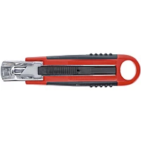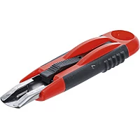 Mesbehuizing uit ABS-kunststof, handgreep van slipvaste TPR-kunststof.Automatische mes-terugvoer met sterke mes-terugvoer veren.incl. 1 trapezium mes met geleidingsgatMesgrootte: 61,5 mm (32 mm) x 19 mmDikte: 0,6 mm