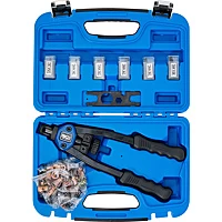 Ideaal voor moeilijk bereikbare plekken.Geschikt voor klinkmoeren M3, M4, M5, M6, M8, M10Geschikt voor aluminium, stalen en roestvrijstalen klinkmoerenMax. slag 9 mmGewicht: 1100 gLevering:5 verwisselbare metrische trekkerparen voor M3, M4, M5, M6, M8, M10Klinktang 330 mm (13″)10 blinde klinkmoeren M310 blinde klinkmoeren M410 blinde klinkmoeren M510 blinde klinkmoeren M610 blinde klinkmoeren M810 blinde klinkmoeren M10Universele sleutel