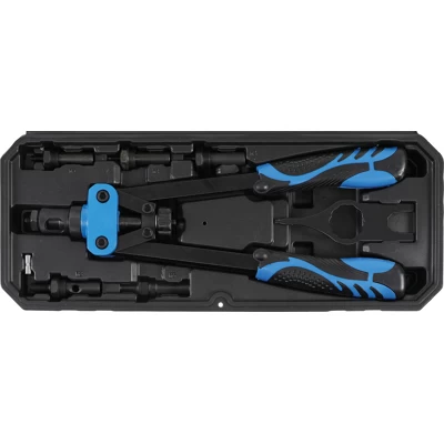 handgrepen voor 2-handen-bediening met optimale krachtoverbrenging.Levering:Klinktang1 wartelmoer met klinkmoerhouder M3 voor boring Ø 5,0 mm1 wartelmoer met klinkmoerhouder M4 voor boring Ø 6,0 mm1 wartelmoer met klinkmoerhouder M5 voor boring Ø 7,0 mm1 wartelmoer met klinkmoerhouder M6 voor boring Ø 9,0 mm1 wartelmoer met klinkmoerhouder M8 voor boring Ø 11,0 mm1 montagesleutel voor trekdoorns en mondstukken