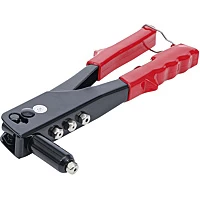 Popnageltang met 4 verwisselbare mondstukken voor klinknagels Ø 2,4 / 3,2 / 4,0 / 4,8 mm.