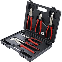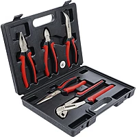 tangen met zware 2-componenten handbeschermingsisolatie.Levering:Combinatietang, 175 mmZweedse zijsnijtang, 165 mmTelefoontang, recht, 200 mmTelefoontang, gebogen, 200 mmWaterpomptang, 240 mm, doorlopende scharnierin een kunststof koffer