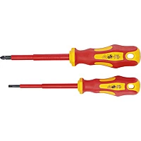 VDE gekeurd volgens DIN EN 60900.Levering:VDE schroevendraaier, kruiskop: PH2VDE schroevendraaier, sleufkop: 4 mmTechnische gegevensSlipvaste 2-componenten handgreepMeslengte 100 mmBruto gewicht 170 gram