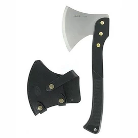 Bijl Muela HA-W. Met een heft van 33 centimeter van hard aluminium en een totaalgewicht van slechts 680 gram, is deze HA-W bijl licht van gewicht voor zijn formaat. Het heft zorgt voor voldoende grip en is robuust, waardoor deze bijl een zeer lange levensduur heeft. Het lichte gewicht van de bijl vermindert de inning die nodig is tijdens het gebruik, waardoor u energie over houdt voor het zware werk! Het lemmet van 13.5 centimeter lang is uiterst scherp geslepen en is van een hoge kwaliteit staal gemaakt. Hierdoor blijft het lemmet ook langer scherp en hoef u deze zelf voor geruime tijd niet te slijpen. Deze stoere HA-W bijl van Muela heeft een strak design en wordt geleverd met een bijpassende lederen etui.