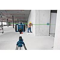 handgrepen met softgrip* Bijzonder robuust, met de laserkop beschermd door een aluminium kooi* Met groene laser* Stof en spatwater beschermend (IP54)* Waarschuwingsfunctie voor fout bij het egaliseren Technische gegevens:* Laser : groen* Stof en spatwaterbeveiligd : IP 54* Werkingsduur : max. 50 uur* Gewicht : 2500 gram Standaard Meegeleverd* 1x Ah NiMH accu (ET-nr. 1 608 M00 05G)* 2x 1,2V HR20 (D) (9Ah)* 2x 1,5V LR20 (D)* 1x Batterijvak (ET-nr. 1 608 M00 05D)* 1x Afstandsbediening – RC 1 (0 601 069 900)* 1x Universele houder – WM 4 (0 601 092 400)* 1x Transportkoffer (ET-nr. 1 608 M00 05F)