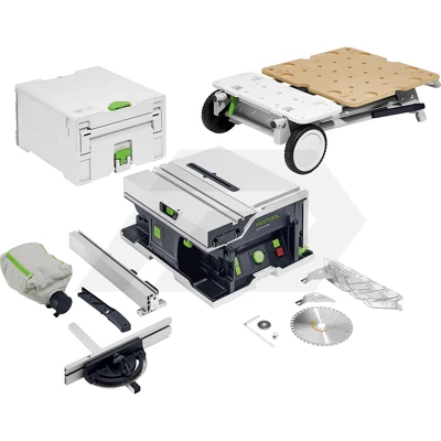 zaagbladen voor elk materiaal de toerentalkeuze voor op materiaal afgestemde snelheid gebeurt via het digitale displayStofarm: stofopvangzak voor stofarm werken ook zonder mobiele stofzuigerGezond werken in systeem: Ideaal ook in combinatie met de Festool-accu-stofzuigersCombineerbaar: met het complete Festool Systainer-systeem en de bedrijfswageninrichting van bottFlexibel onderstel: Het onderstel UG-CSC-SYS is de perfecte transportoplossing voor de plaats van gebruik en de ideale werktafel in één ( Optioneel )Uniek: drie jaar garantie ook op accu’s en oplaadapparatenZwaartepunten voor de toepassingen:Afkortzaagsneden tot 450 mm breedte, precies en snel met de geïntegreerde schuifsledeZaagsneden in lengterichting tot een zaaghoogte van 48 mm en een breedte van 280 mm met stevig steunstuk op de geïntegreerde uitklaptafelHoekzaagsneden van -10 tot 47 dankzij het zwenkbare zaagbladExacte hoogte- en hoekinstelling door middel van elektrische stapmotoren. Op 0,1 mm nauwkeurig instelbaar en via display regelbaarPraktisch transporteren in handzaam SystainerformaatTechnische Gegevens:Accuning 36 VOnbelast toerental 4 500 6 800 min?¹Opnameboorgat zaagblad 20,00 mmHellingshoek -10 – +47Zaaghoogte 0 0 – 48 mmZaaghoogte 45 0 – 34 mmZaaghoogte -10 21 – 32 mmVerstekhoek 0 – 70Parallelle zaagsnedebreedte 280,00 mmTafelhoogte 280,00 mmAfmetingen (L x B x H) 512 x 396 x 296 mmProductgewicht 21,00 kgLeveringomvang:BedieningsgereedschapCirkelzaagblad WOOD FINE CUT HW 168×1,8×20 WD42HoekaanslagParallelaanslagSpaanopvangzakOnderstel UG-CSC-SYSSpouwmes met beschermkapSpouwmes voor verdekte zaagsnedenVeiligheids-duwstokGeleverd zonder accu’s en lader