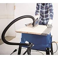 zagen van grotere werkstukken met de krachtige 2.000 W motor. De opvouwbare verlengingstafel zorgt ervoor dat u de tafelgrootte aan kunt passen wanneer dat nodig is, ook is hij stevig en stabiel voor al uw zaagwerk. De stevige zaaggeleider zorgt voor precisiewerk met deze tafelzaag. Het meegeleverde hardmetalen zaagblad zorgt voor optimale zaagprestaties. Ook zijn de afschuining en de hoogte van de zaag volledig aanpasbaar door middel van het handwiel en is de zaaggeleiding uitgerust met een uitgang voor een zuigslang. De HS100S is compact en lichtgewicht wat hem gemakkelijk te vervoeren en op te slaan maakt. Specificaties:Tafelgrootte: 64,2 x 48,5 cm (L x B)Tafelgrootte met verlenging: 64,2 x 94 cm (L x B)Totale hoogte: 83 cm