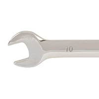 Gehard en getemperd metrische chroom vanadium ringratelsleutel met spiegel gepolijst afwerking. Verchroomd voor roestweerstand. 5 Graden ratel actie. 180 Graden kantelbare kop. Ideaal voor het gebruik op moeilijk bereikbare plekken.
