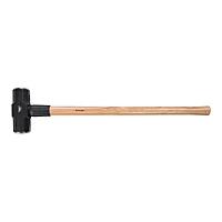 Gesmede stalen kop en hoogkwalitatieve schacht uit essenhout. Poedergecoate kop met gepolijste slagoppervlakken. Gevernist handvat als bescherming tegen