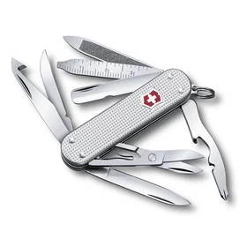 Victorinox MiniChamp Alox Limited Edition met 14 functies – Dit zakmes met een afmeting van 58 mm behoort tot de small pocket knives. Alle tools zijn gemaakt van roestvrij staal. De schalen van trendy zilver Alox met reliëf. Als je een probleem kunt oplossen, dan moet je dat doen. Een los schroefje op een calculator, een afgebroken vingernagel of een ongepelde sinaasappel; geen probleem! Met de handige MiniChamp heb je niet alleen de juiste schroevendraaier bij de hand – de kleine kampioen is ook bij uitstek geschikt voor manicure doeleinden en is je van dienst bij het huishouden. Praktisch opgeborgen aan je sleutelhanger zal je de compacte allrounder nooit verliezen of vergeten. De multifunctionele eigenschappen zijn verpakt in een klassiek design. Deze limited edition serie is in drie kleuren verkrijgbaar. Gemaakt met Zwitserse precisie en vakkundigheid, zoals je mag verwachten van de makers van het originele “Swiss Army Knife”. Levenslange garantie. Het zakmes wordt geleverd In een doosje.13 functies:1. lemmet2. schaar3. nagelvijl met nagelreiniger4. bokkenpootje5. schroevendraaier6. liniaal (cm)7. liniaal (inches)8. noodlemmet/briefopener9. sinaasappelschiller met schraper10. flesopener11. kruiskopschroevendraaier12. draadstripper13. sleutelring